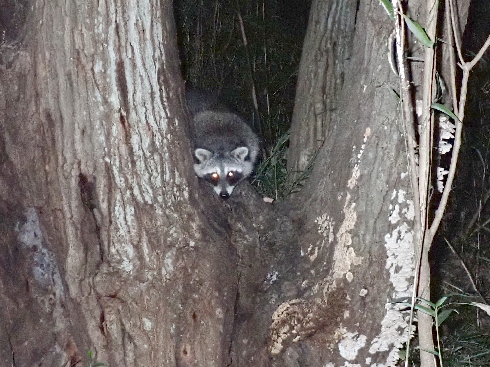 寺家ふるさと村 むじな池 の近くで アライグマと遭遇しました。