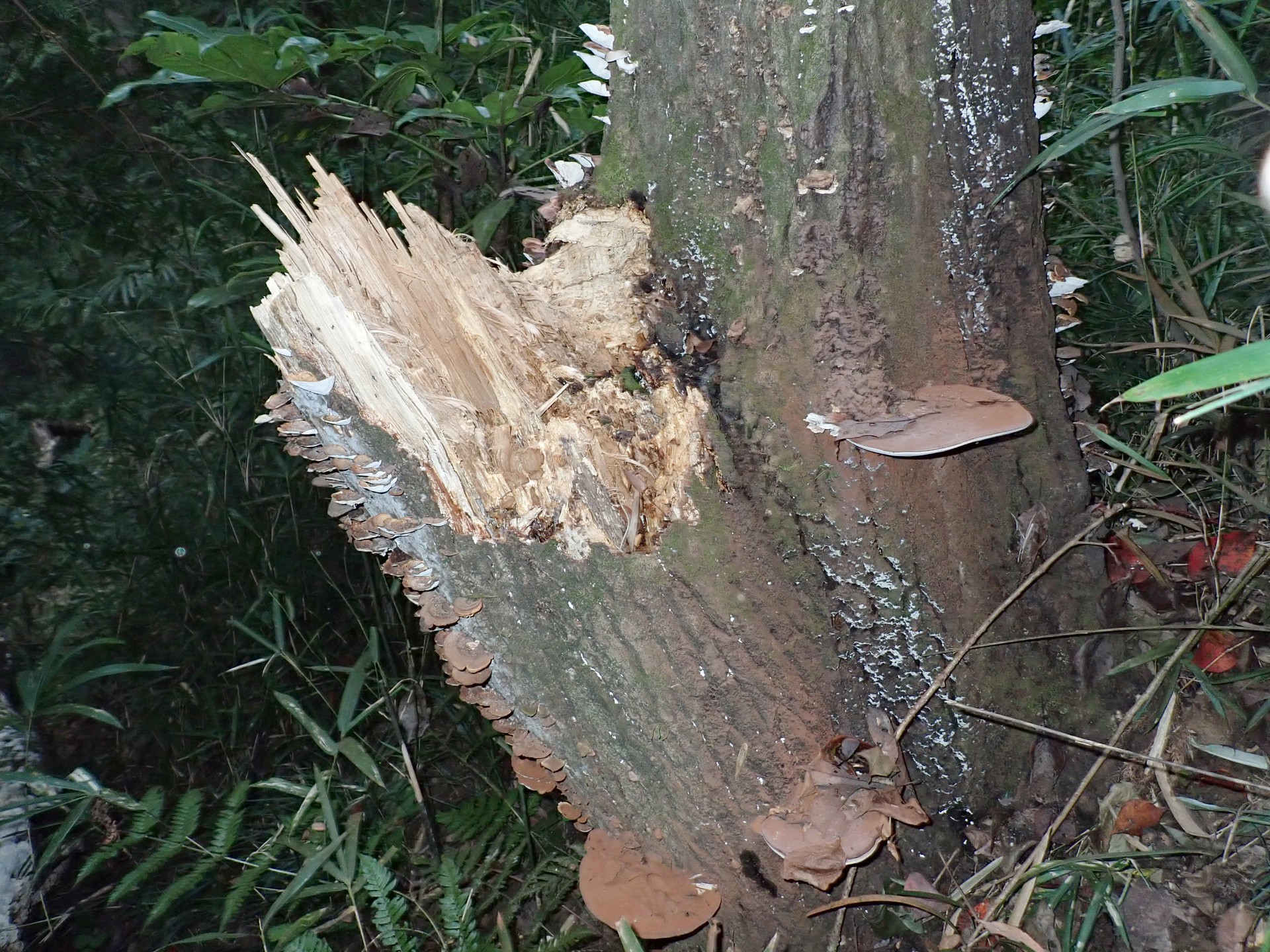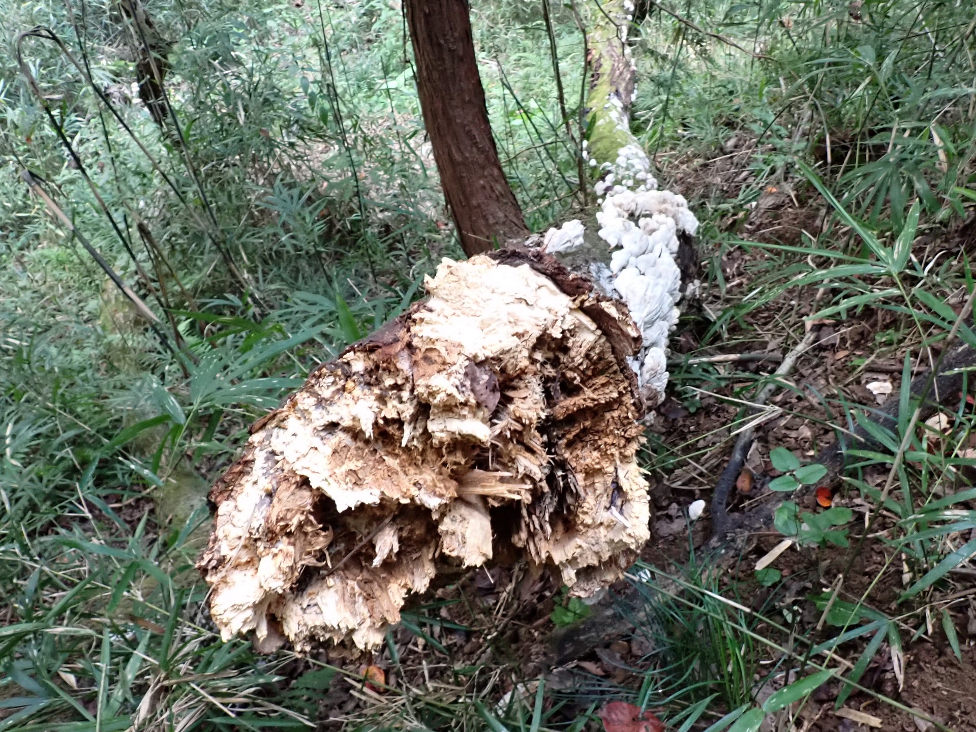 - 倒木直後の折れ部分の様子:幹中心部の腐りは無い。カシノナガキクイムシ被害も無し。その他の昆虫、きのこによる強度劣化は不明です?