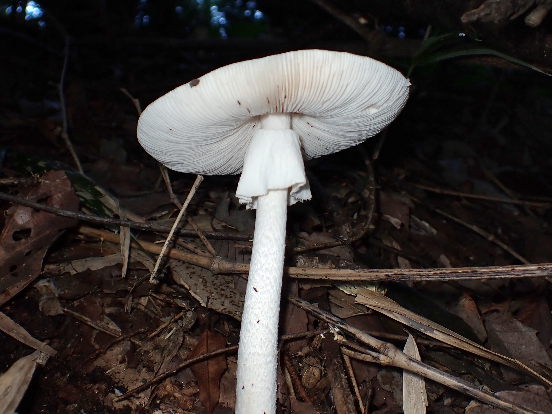 下の写真は、2.よく見かけるドクツルタケの傘の裏側です。