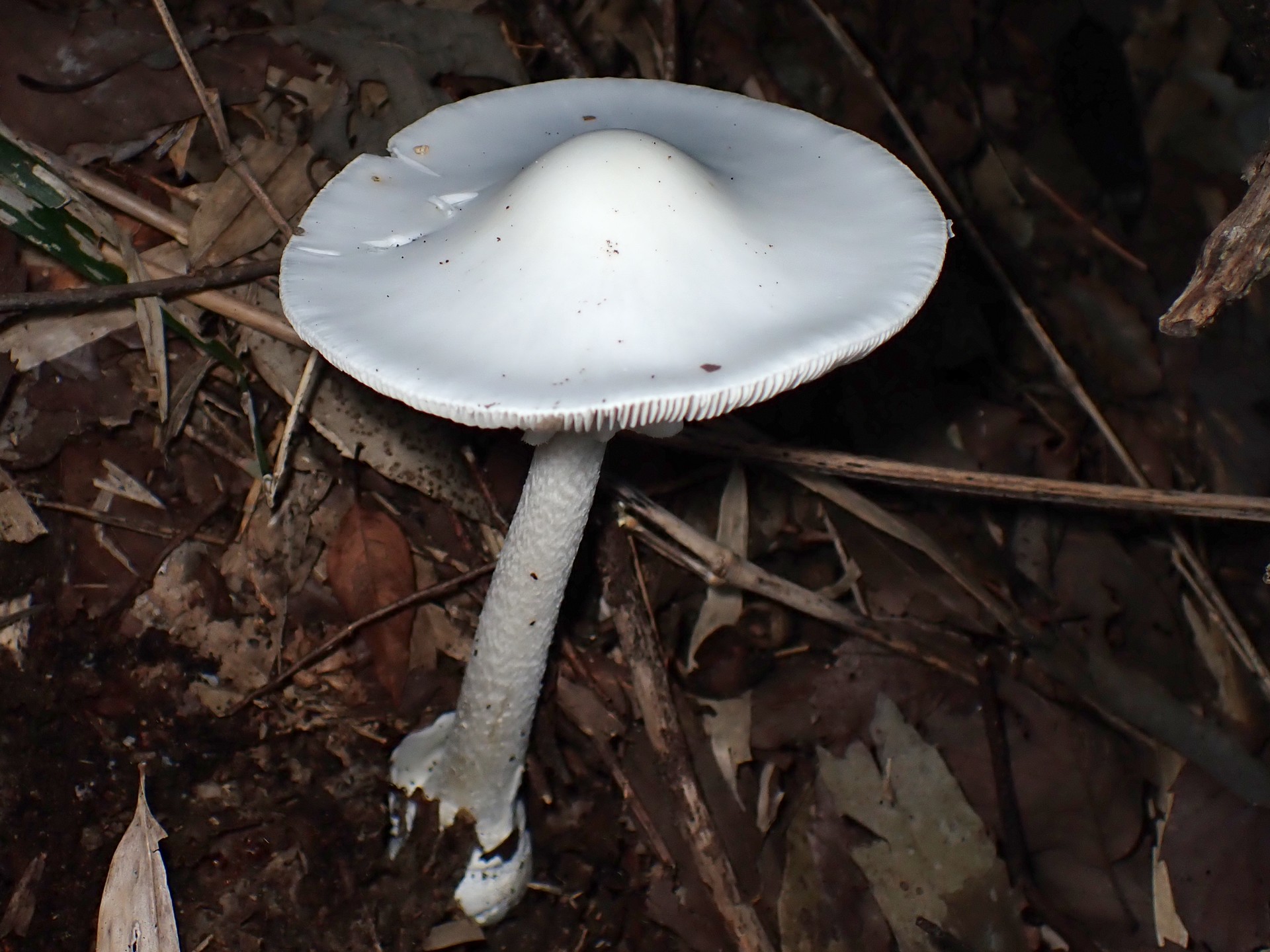 シロタマゴテングタケと似ていますが、柄のささくれが多いのが ドクツルタケ とのこと。