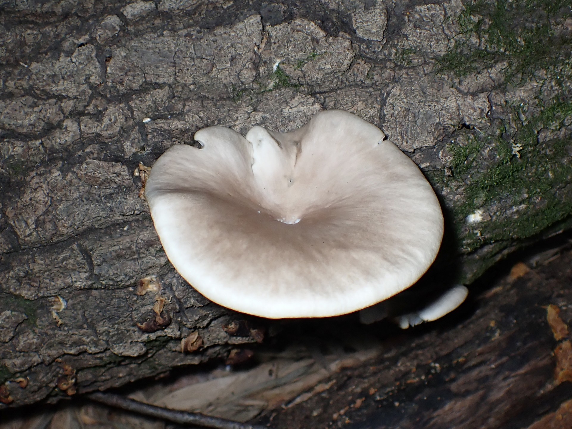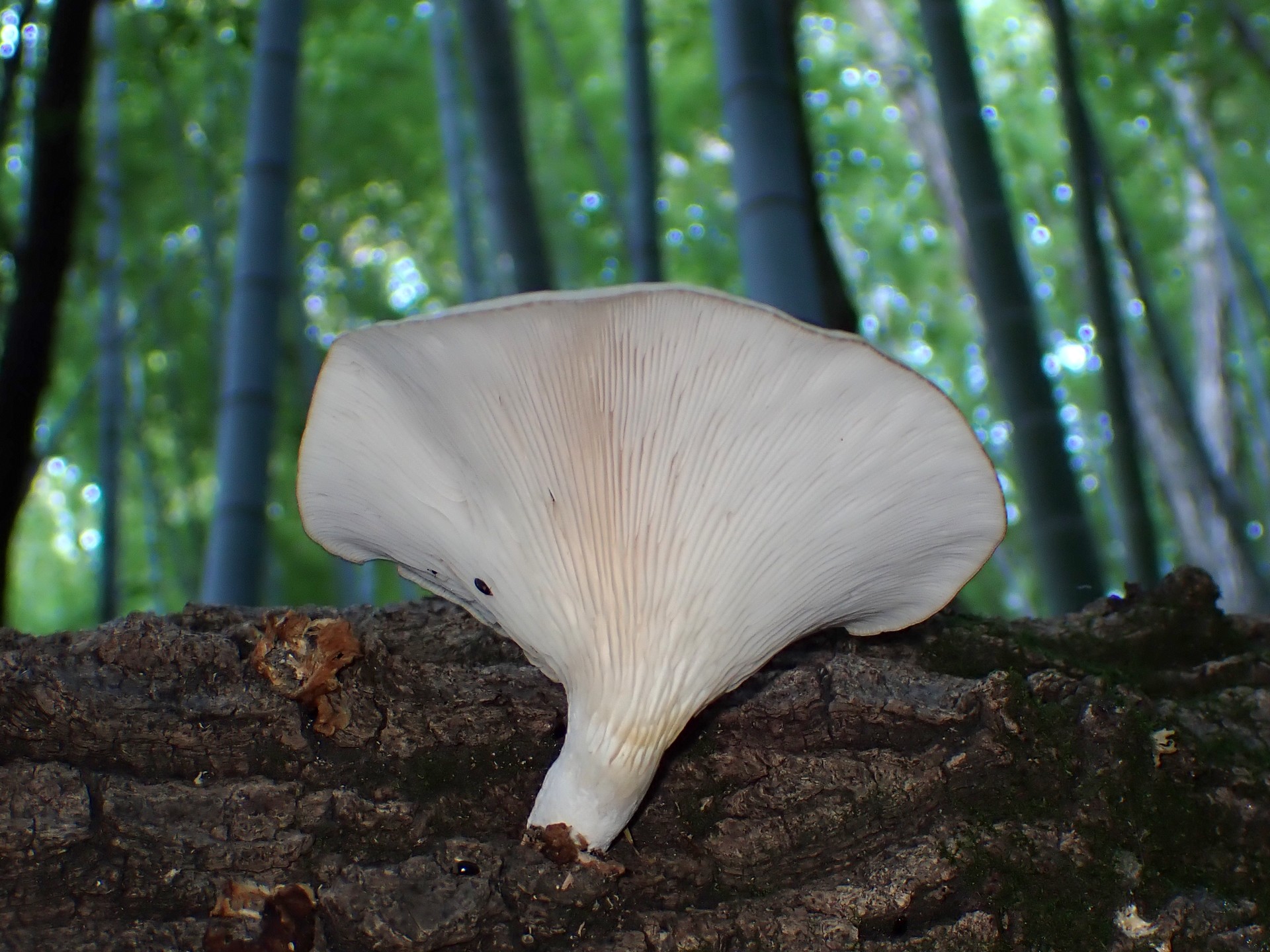 モウソウチクの林の側、落ち枝に大きな ヒラタケが一つだけ。