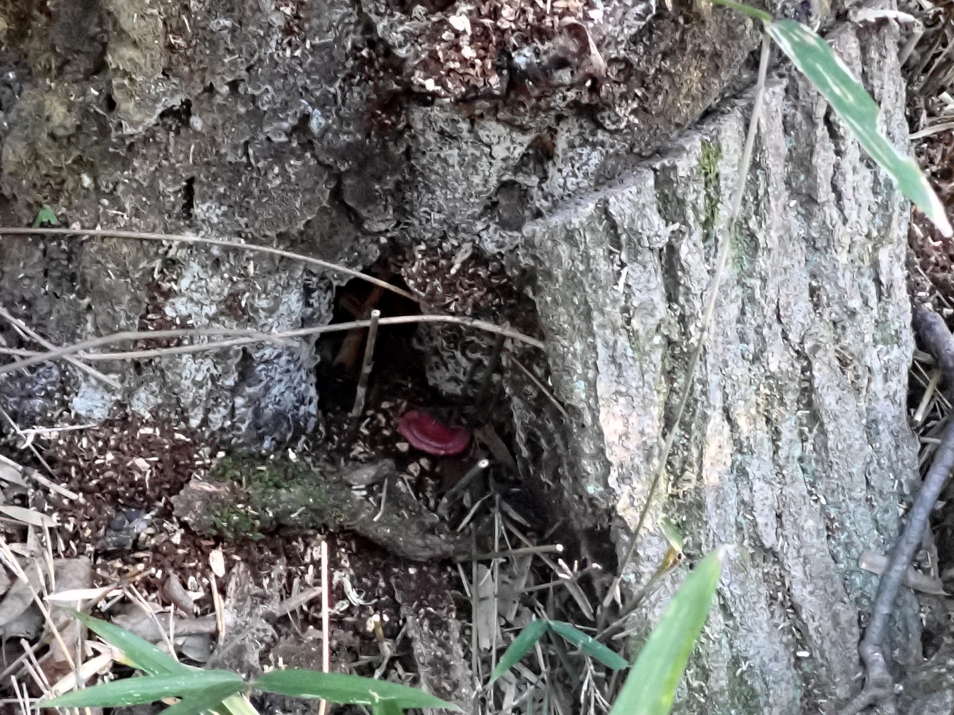 このマンネンタケは 大きなクヌギの切り株のウロ(樹洞)の中にあります。