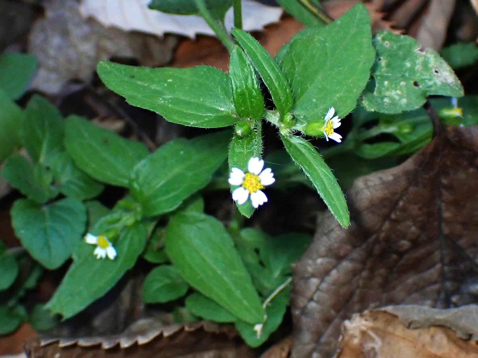 散歩道の側に ハキダメギク を見付けました。