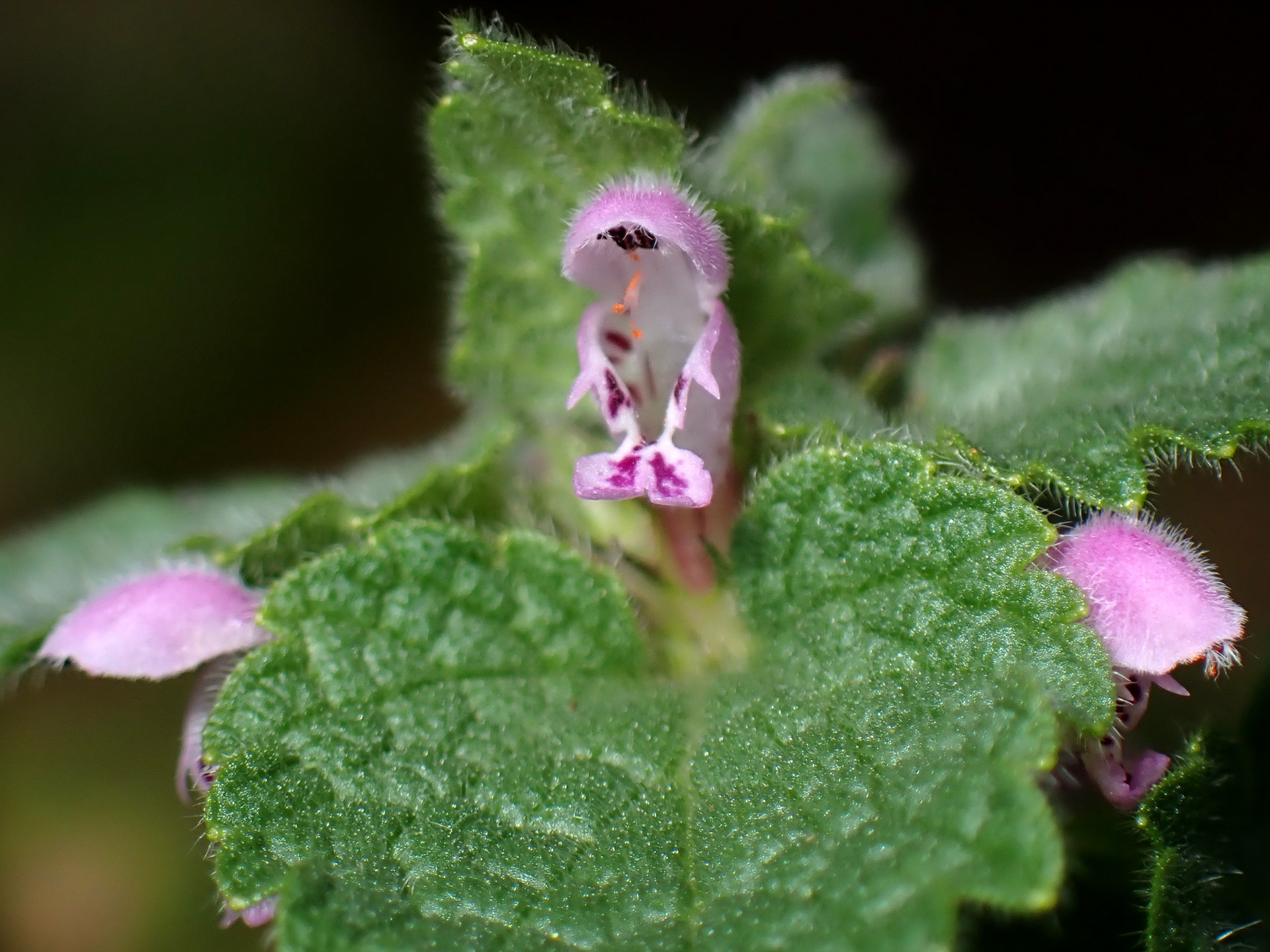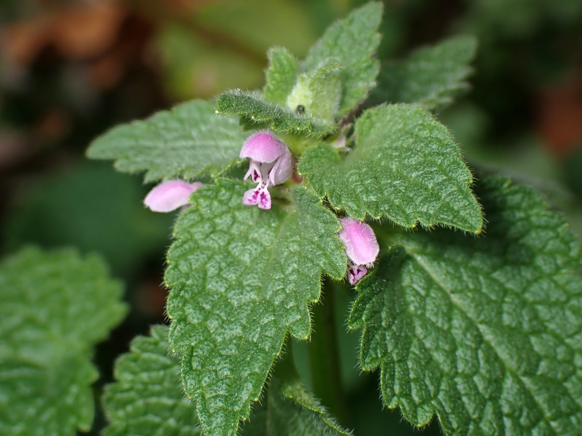 12月に咲いている花、ヒメオドリコソウ です。春、早い時期から咲き始める花です。ネット情報によると「他の花が少ない時期にはミツバチにとっては重要な蜜の供給源」とのこと。