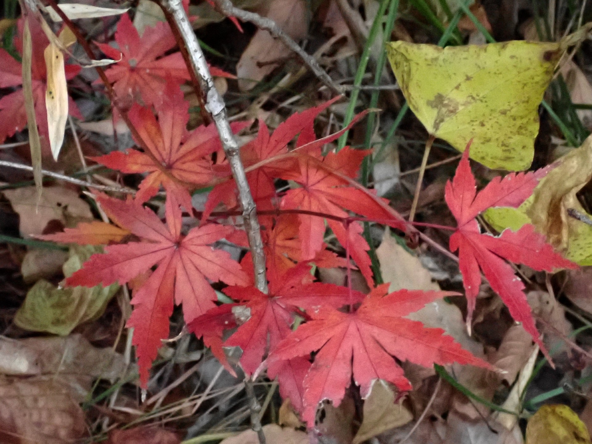 👆 4月19日に幼木を見付けた場所です。高さ 20cm位のモミジが 2~3本あります。樹齢 1年か 2年?数十メートル離れた場所にあるモミジの木から種が飛んで来て発芽したものと思われます。