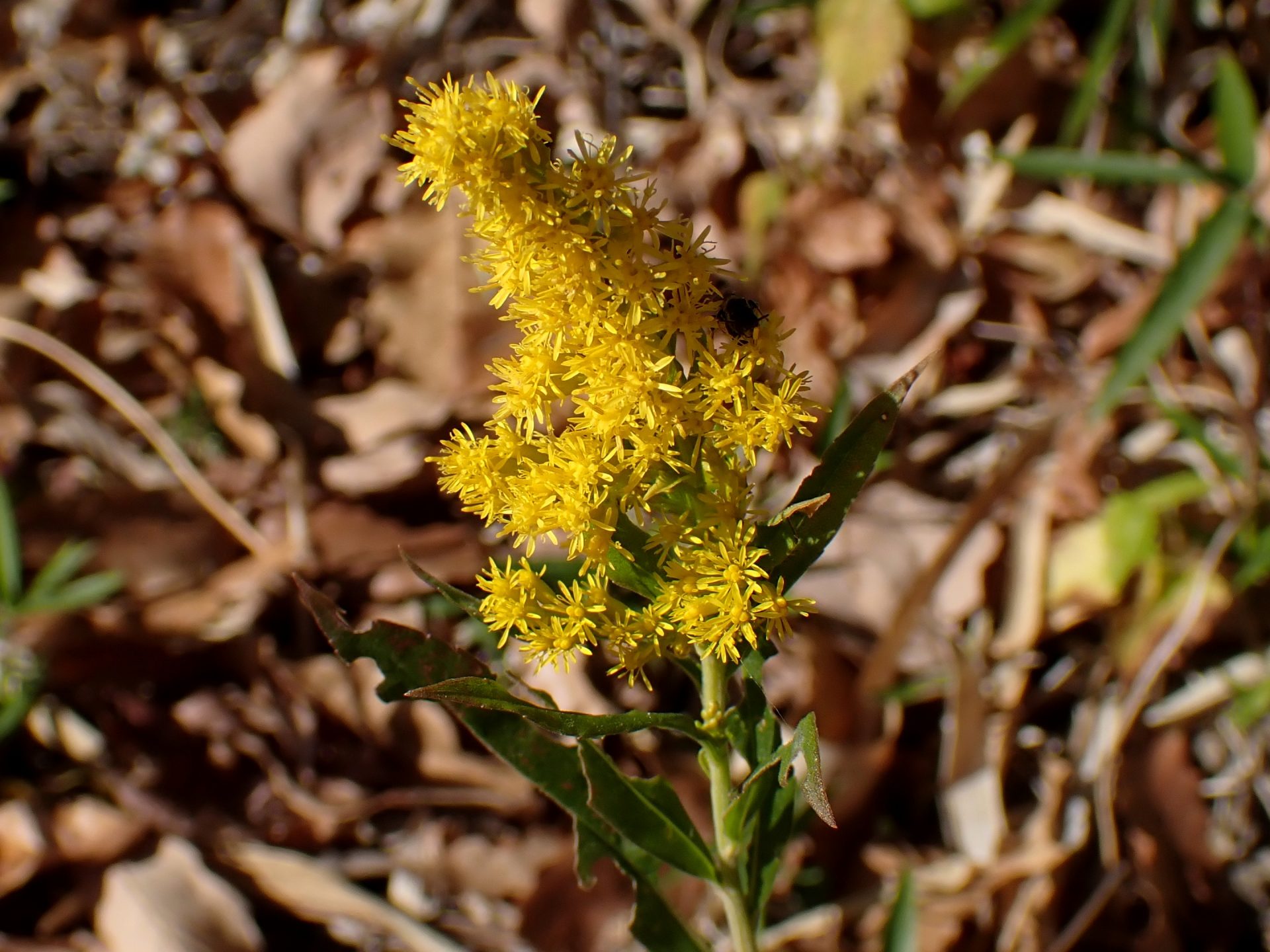 日当たりの良い落ち葉斜面に高さ 30cm程のセイタカアワダチソウを見付けました。