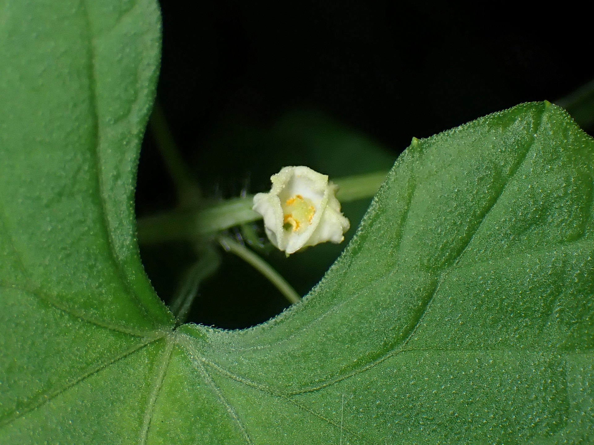 人気のスズメウリの花です。下の写真が雌花、実になる部分が既に膨らんでいます。