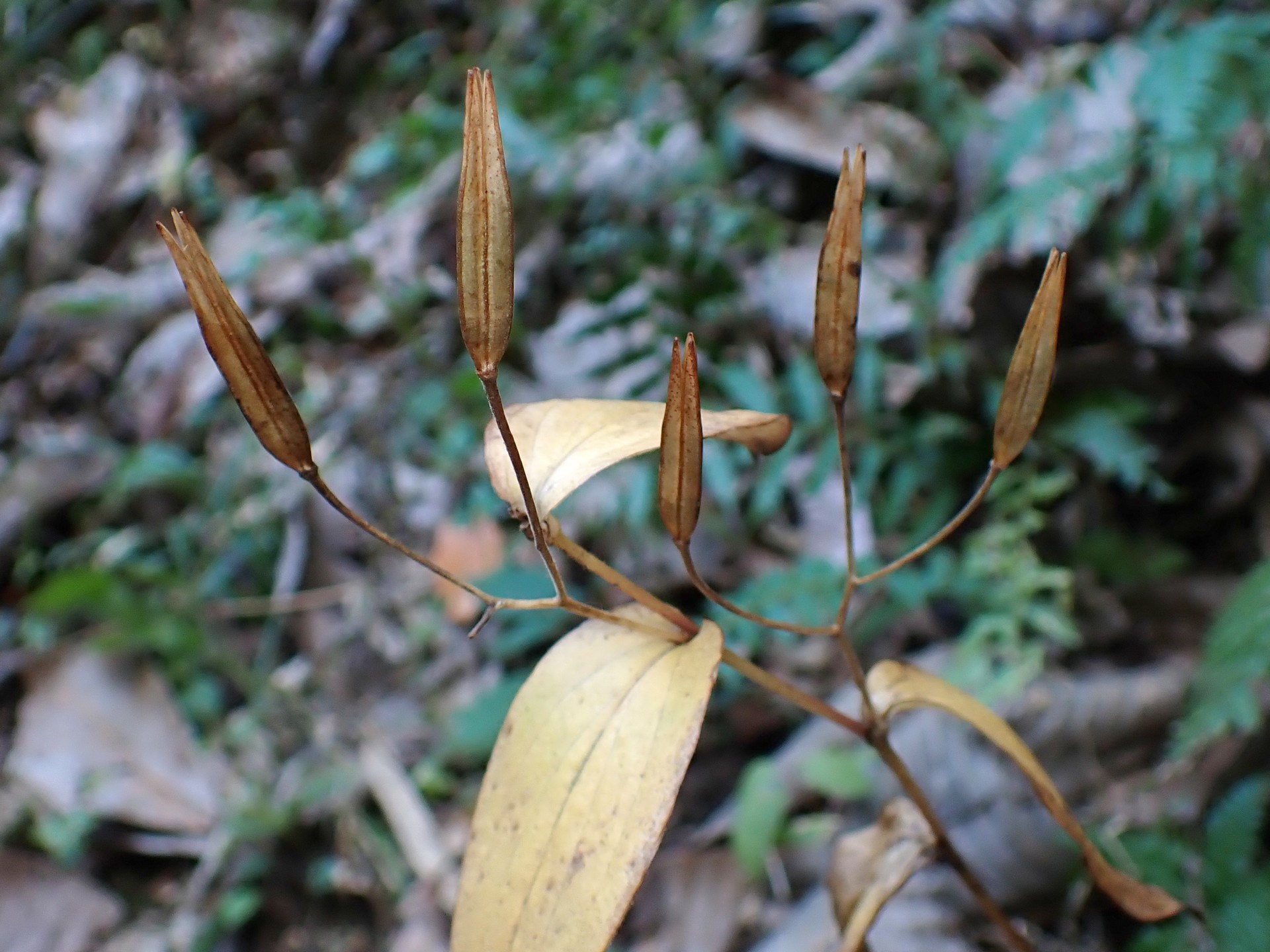 👆 約2か月前 9月22日に近くの場所の花の写真があります。今年 2023年は渇水のため 7、8月にヤマホトトギスの花がほぼ見られず。下の写真は9月に咲いた花の種です。